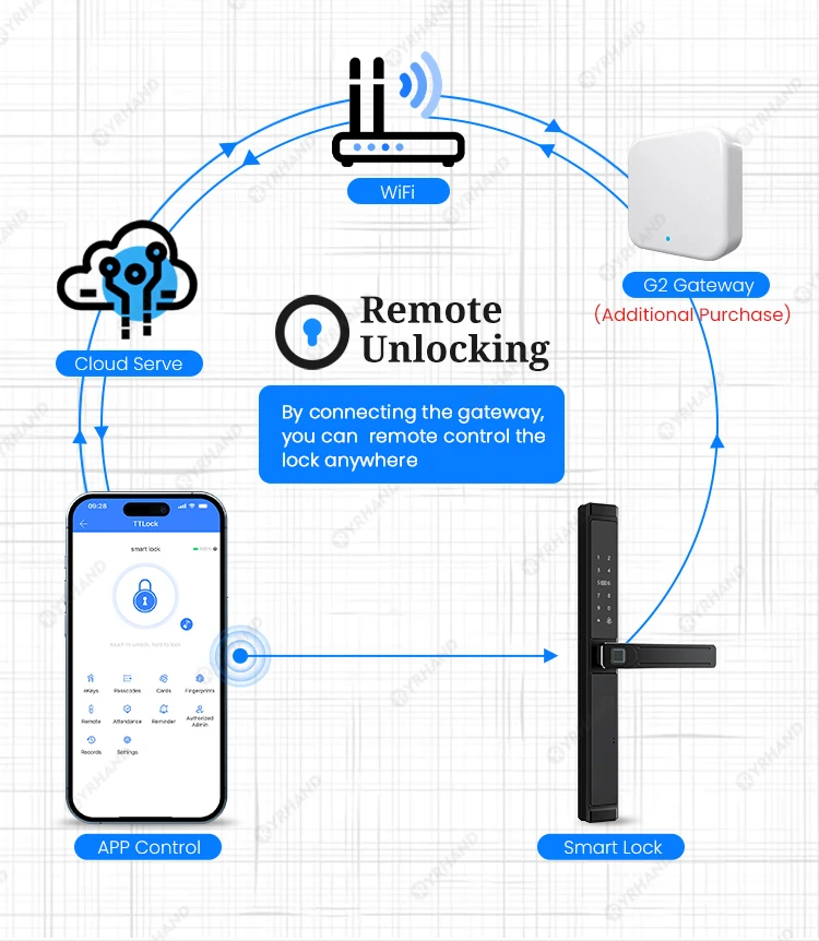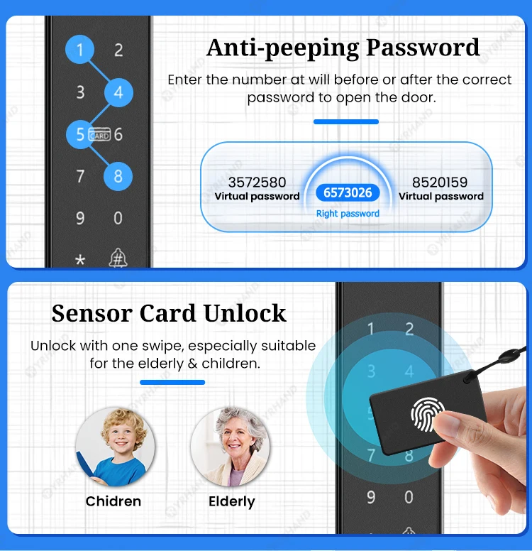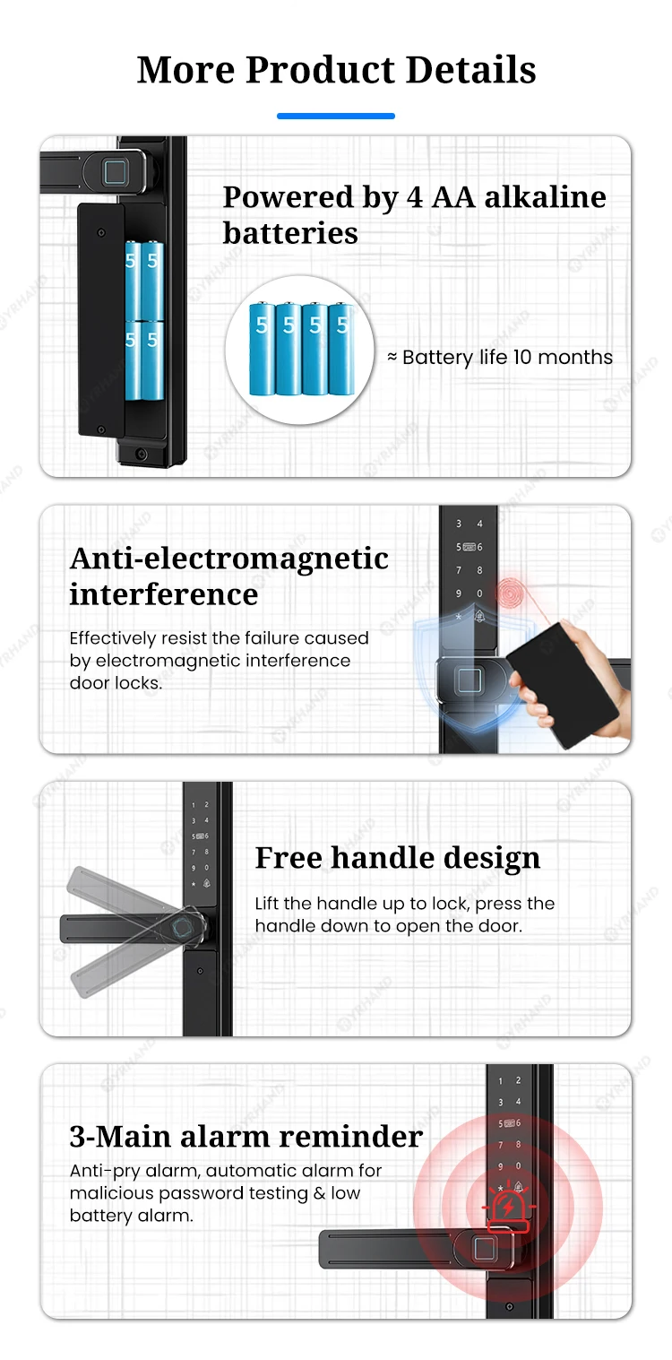 فتح القفل على الوجهين: بصمة الإصبع وكلمة المرور وبطاقة IC والمفتاح وجهاز التحكم عن بعد عبر التطبيق للوصول متعدد الاستخدامات.