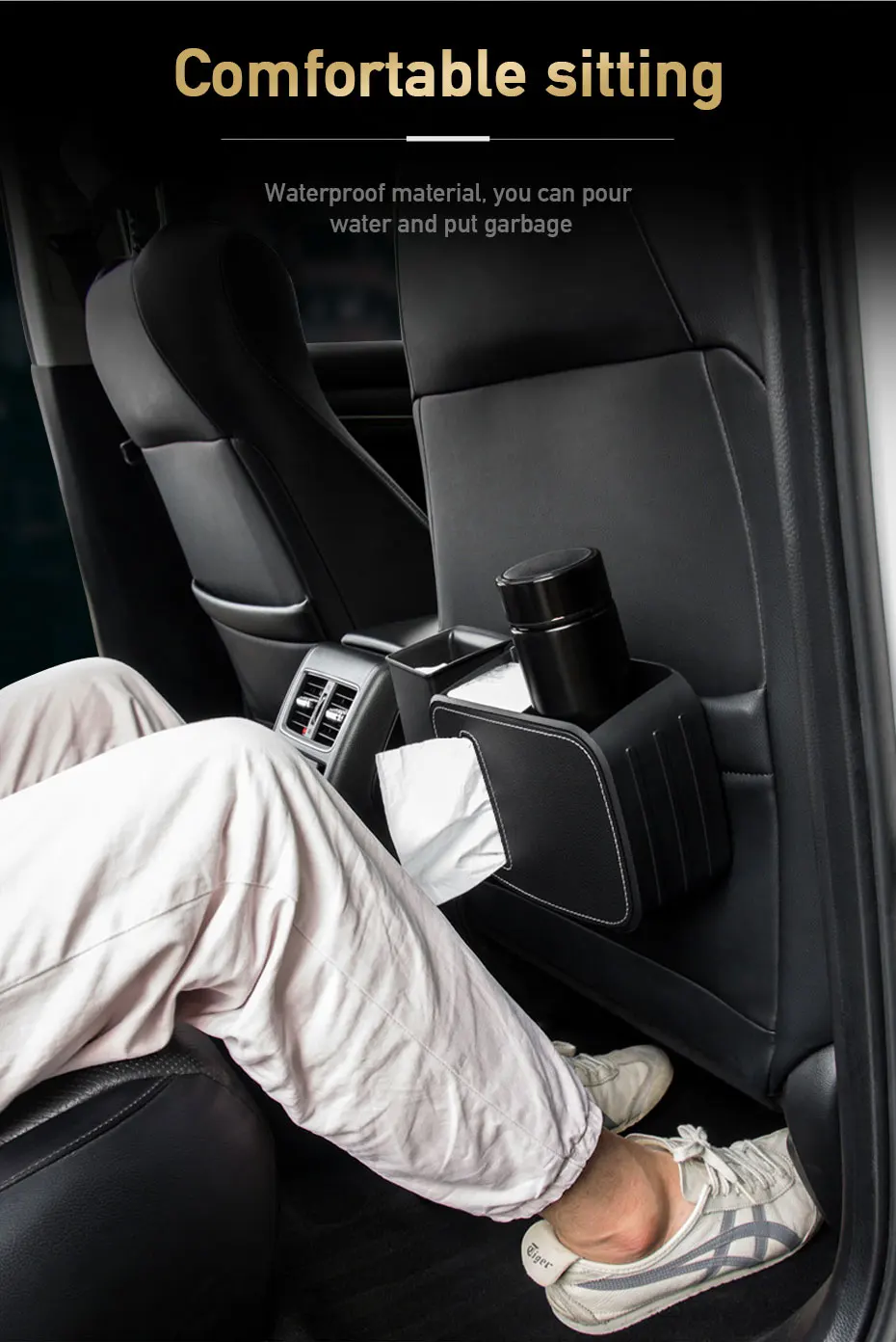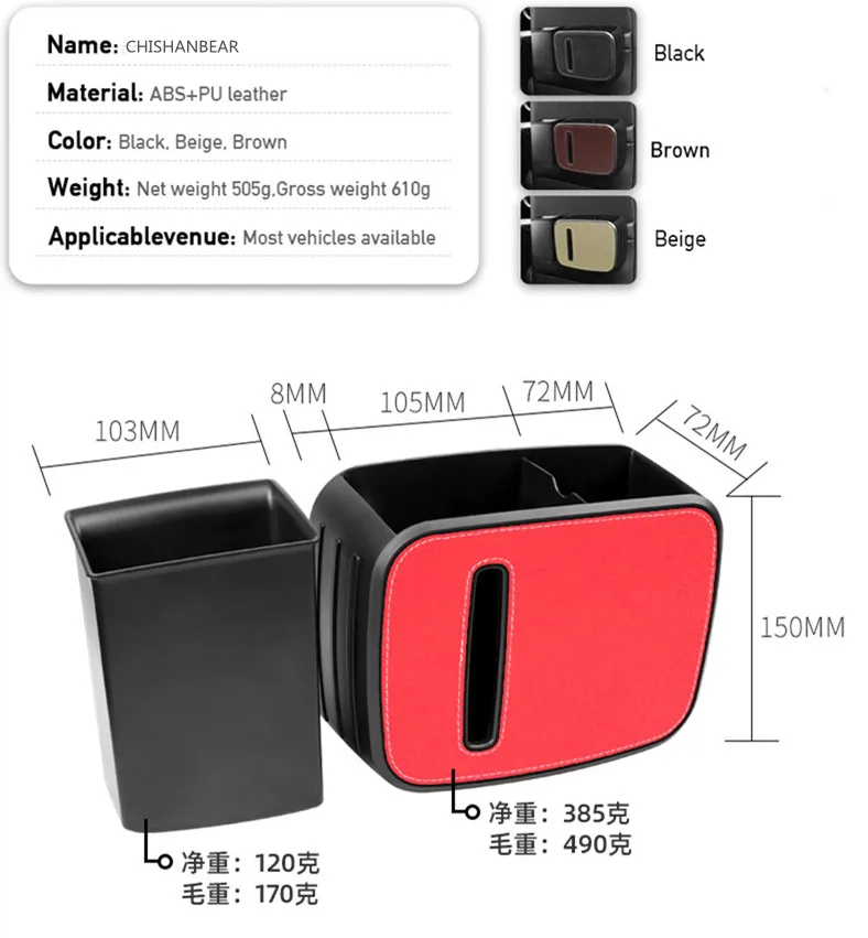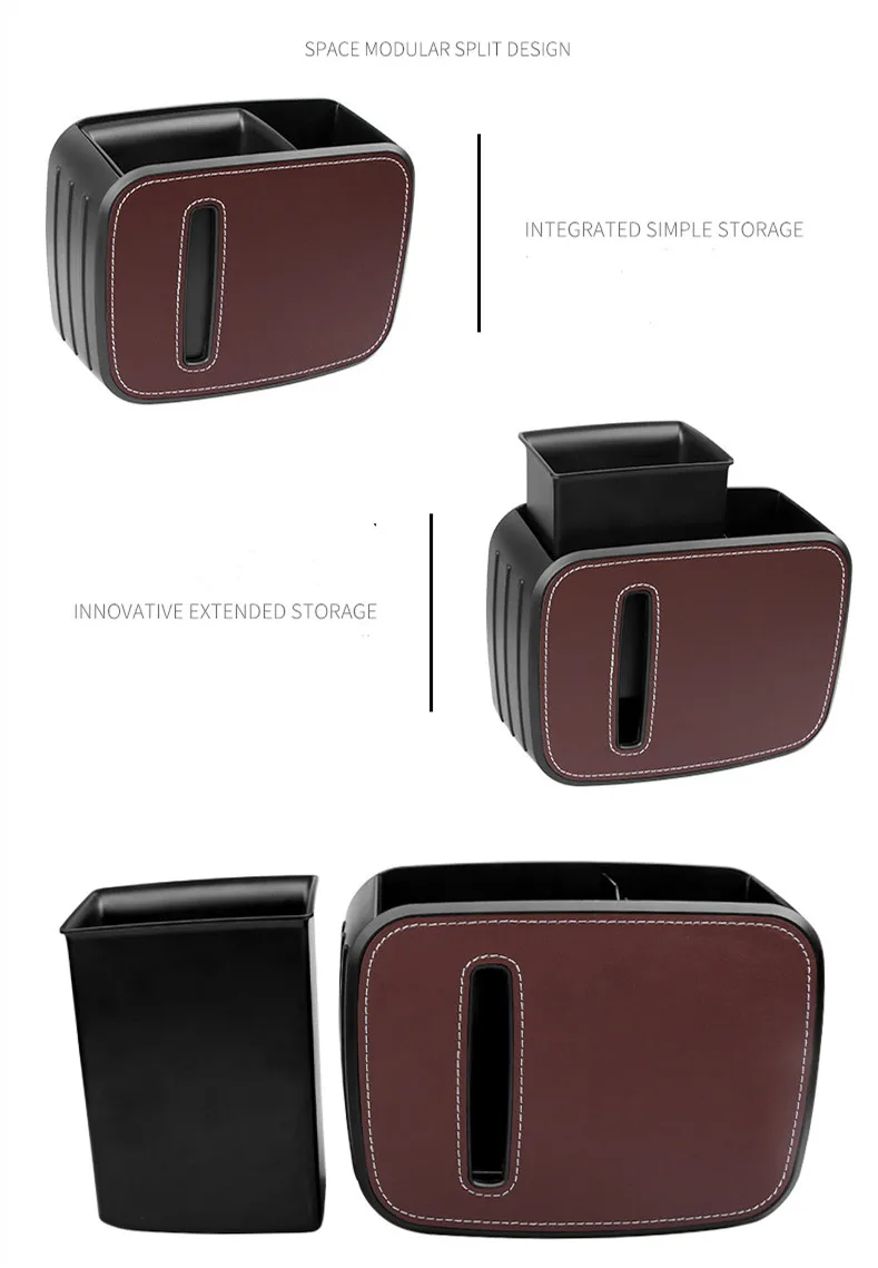 صندوق تخزين متعدد الوظائف للسيارة تفاصيل داخلية مزدوجة معلقة مقسمة سلة مهملات / حامل مناديل / حامل أكواب ماء منظم خلفي للمقعد
